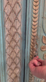 The soft turquoise blue finish has been beautifully worn by time, revealing delicate layers of cream and wood beneath—a testament to its authenticity and charm. This armoire was hand-selected by our founder and her mother on their most recent sourcing trip to France, uncovered in a private home just outside of Normandy.