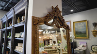 This breathtaking antique French floor mirror brings Old World elegance to modern-day living. Crafted in the Louis XV style, it features an intricately carved giltwood frame with scrolling acanthus leaves, floral garlands, and a dramatic central crest.