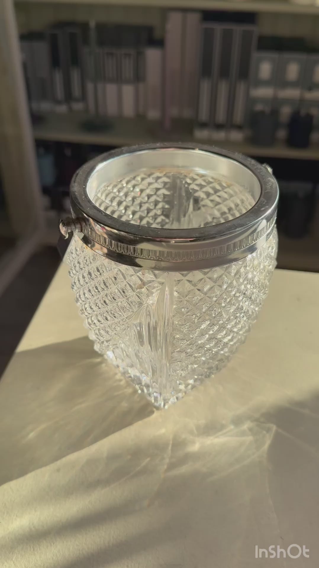 Elegant and refined, The Saint-Honoré Ice Bucket embodies the timeless sophistication of Parisian entertaining. Featuring a beautifully faceted glass body with a diamond-cut and ribbed motif, it catches and scatters light with every movement. The polished silver-tone rim and handle add a touch of understated glamour, creating the perfect balance between function and artistry.